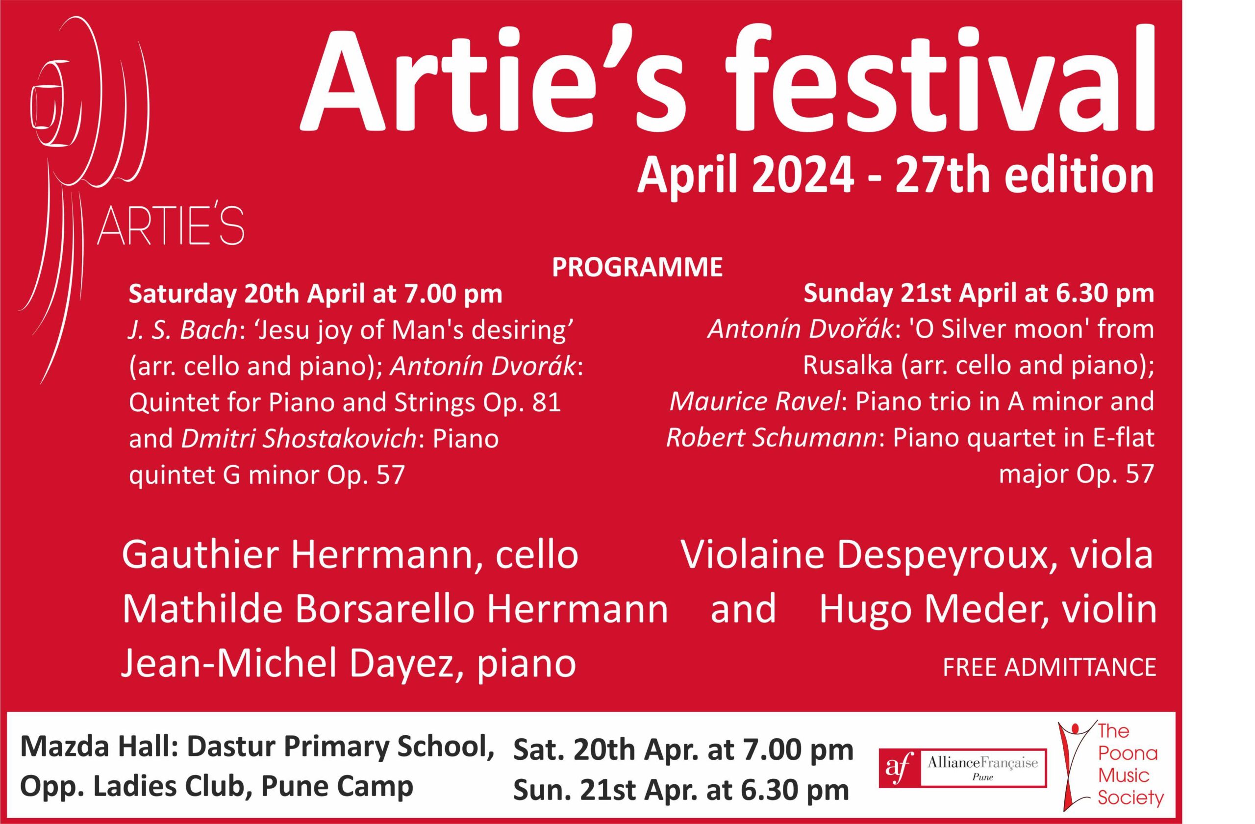 In a programme of Antonín Dvořák: ‘O Silver moon’ from Rusalka (arr. cello and piano); Maurice Ravel: Piano trio in A minor and Robert Schumann: Piano quartet in E-flat major Op. 57