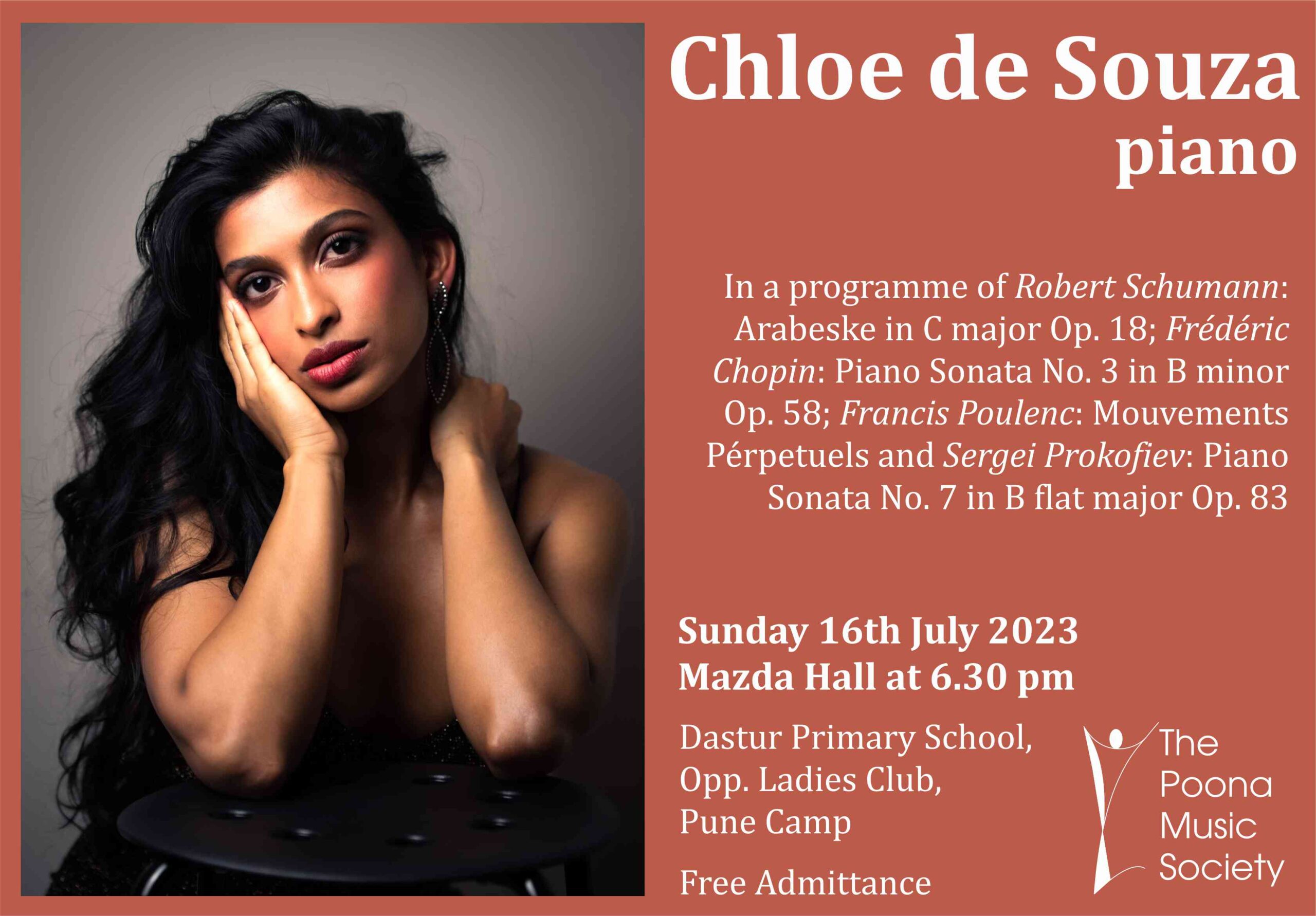 Lauded for her emotional expressivity and her ability to “sing at the piano”, US based Indian pianist Chloe de Souza is creating a name for herself as a soloist and chamber musician. Winner of two All-India piano competitions, she has performed internationally across India, France and the United States. Recent appearances include solo recitals for the Roland Park Place Retirement Community in Baltimore and the Chapel Hill Piano Salon Concert Series in North Carolina, as well as solo and chamber performances at the Con Brio Music Festival in Mumbai, India, and the “M.U.S.i.C – Stars in the Classics” concert series in Cleveland.