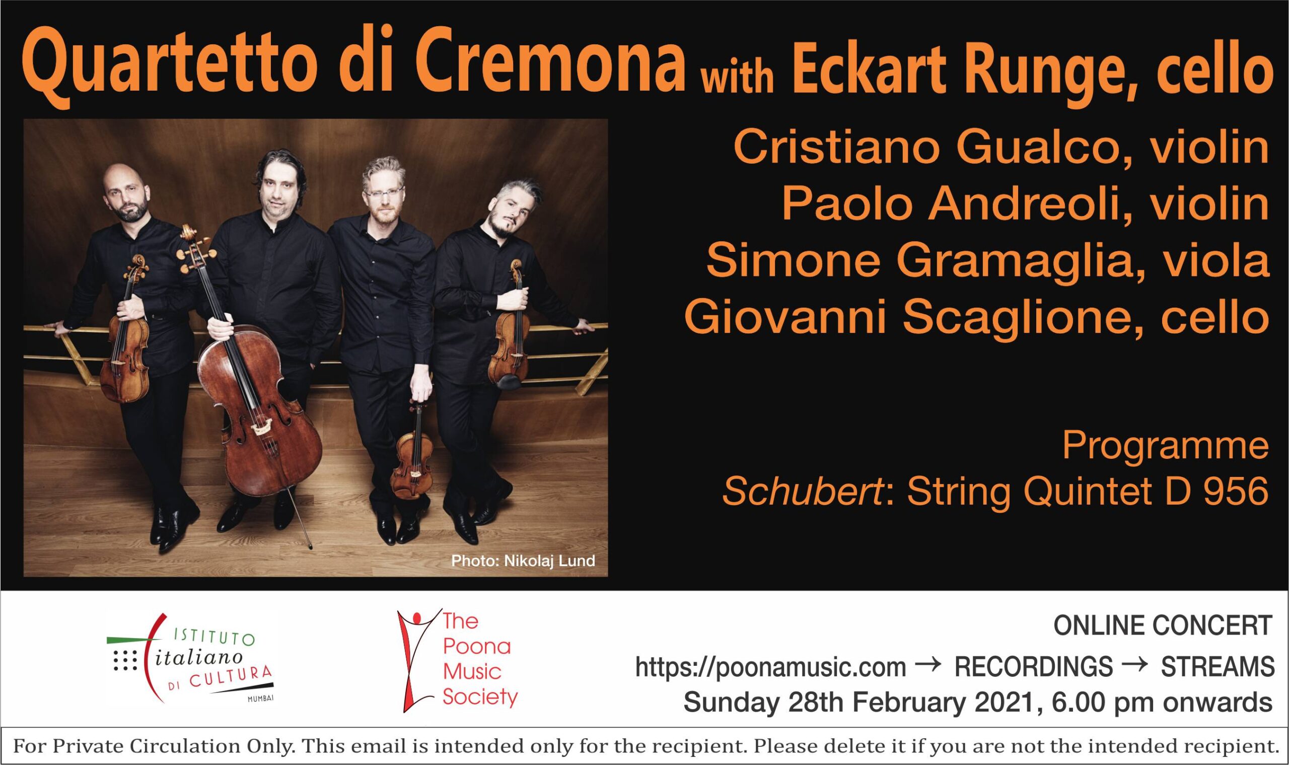In 2020, the Quartetto di Cremona celebrated the first 20 years of its career, an important milestone for an Italian ensemble. Noteworthy recent recording projects include a double CD dedicated to Schubert, featuring cellist Eckart Runge. The album was recorded with the Stradivarius set of instruments named ‘Paganini Quartet’, on kind loan from the Nippon Music Foundation (Tokyo) and attracted high levels of acclaim in the international press. They have kindly sent us this film of their performance in Bolzano of this beautiful masterpiece.